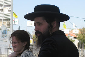 Another non-fancy hat wearer. This woman was begging at the Wall. What the thought process behind this hair covering fashion is, I'm not sure.