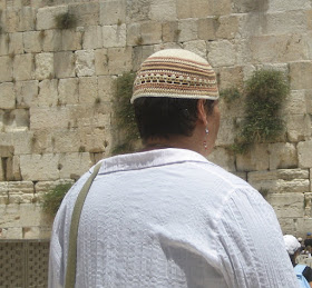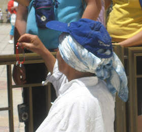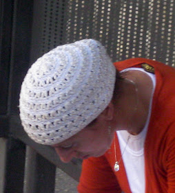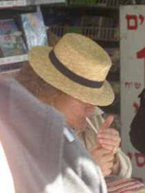 Another non-fancy hat wearer. This woman was begging at the Wall. What the thought process behind this hair covering fashion is, I'm not sure.
