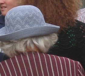 Not all religious women wear wigs. In fact, I'd say it is a minority. There are a number of other ways of following this rule. Often women when they dress up wear hats. Some wear them all the time, some only when they are feeling fancy. Here are a few I've captured. Most of the fancy hats I've seen have been on Shabbat or holidays, because that is when people dress up, so I haven't been able to take pictures. So there aren't too many of these. Hopefully I'll get some more.