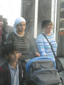 The charming hats above seem to be worn by the older generation. I admit to not knowing what flavor of religion they go with.