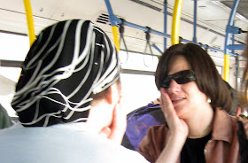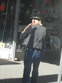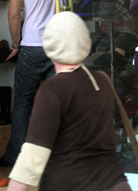 I feel that I should point out, that I did not intentionally take an unflattering picture of the man above. I waited and waited for him to stop scratching his nose, but he never did. I guess he had a very itchy nose. Also, for the uninitiated of you who can't tell this for yourself, the woman here is wearing a wig.