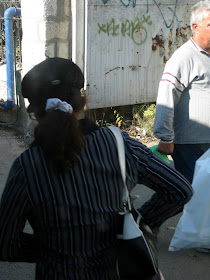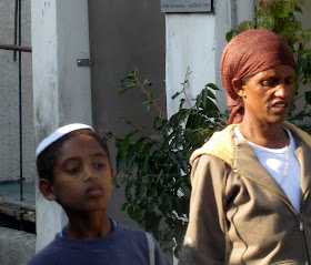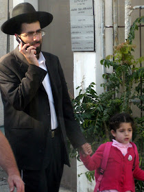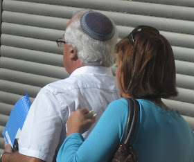 About a week ago, Jerusalem had its municipal elections. Here, what you wear on your head makes a statement about your political views, among other things, so I hung around our local polling place, taking pictures of the different kinds of hats that showed up to vote. Obviously, this is only a small sample of the local color, but I caught a number of different kinds of voters. For the purposes of showing the diversity, I also took pictures of non-hat wearers. After all, they were voting too!