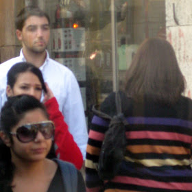And the women. It's harder to tell religiousness with the women, because single religious women do not cover their hair. However, as a guideline, the religious single women generally do not have hair dyed colors that do not appear in the population naturally. So here is a hodgepodge, with no identification attempted.