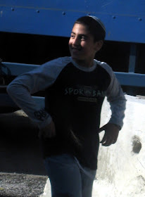 This young man is working for Nir Barkat, our new mayor. I can tell because the shirt on his head says so.
