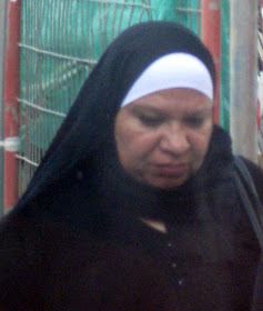This woman is not wearing a black hat, but is wearing headgear I associate with the women in what is actually called here the "black hat community."
